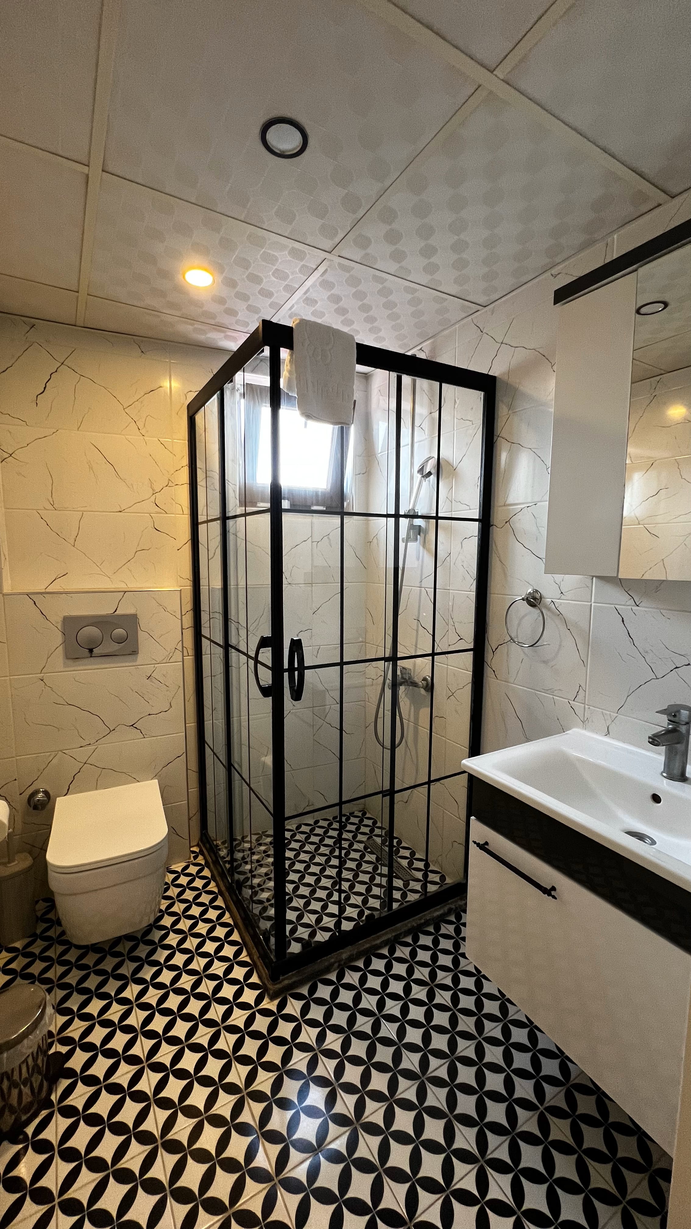 * Duşa kabin, saç kurutma makinesi, makyaj aynası, bornoz ve terlik.